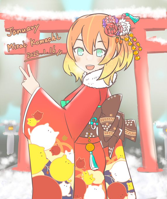1月のミライ小町ちゃん 猫着物可愛い 今年も季節イラスト描いていきたいです #VOCALOID #ミライ小町 #miraikomachi