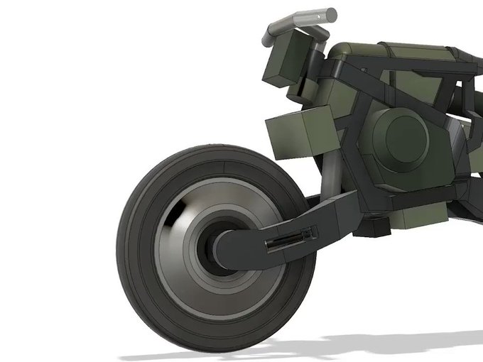 #WIP Snippet of a personal project I'm working on. Trying to figure out the steering mechanism for this bike. I'm not too interested in realism, but want to at least figure out clearances and hint at basic functionality. #conceptart #scifi #bike #fusion360 #3d #design #BBfE