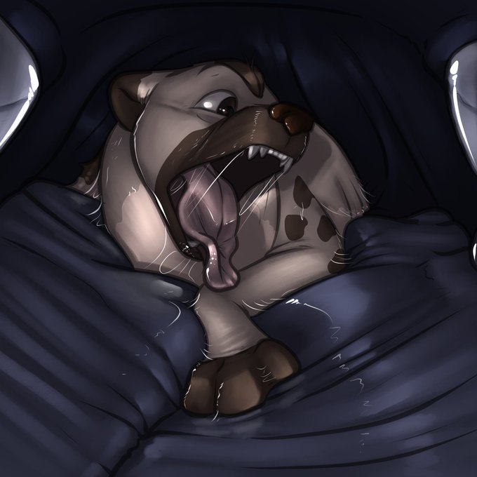 #Luco slipping over the back of #slivoth's tongue, by @HyenaCrocuta . It's just so plush in there!