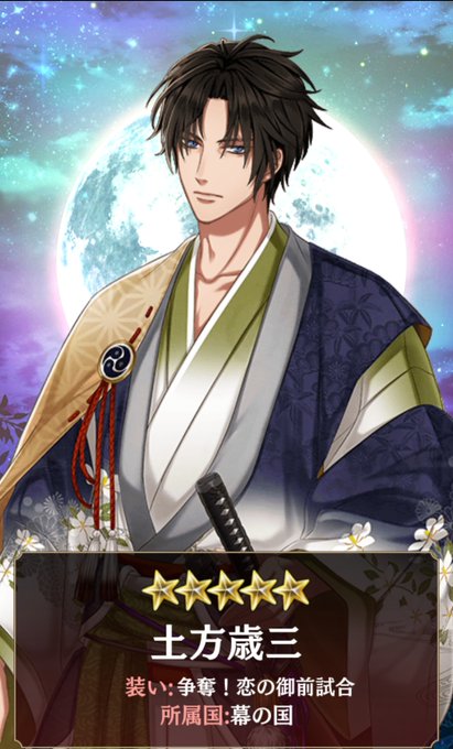 今朝、アカセカの復刻ランク報酬券で欲しくて焦がれていた土方さんお迎え😭