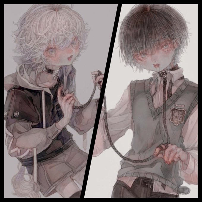 pixiv用に二枚合わせてみたらなんだかリードが繋がっているみたいになった、互いに飼われている…