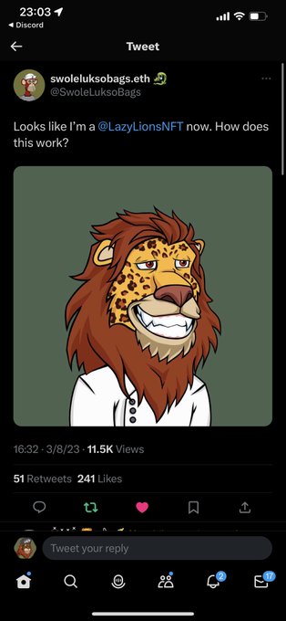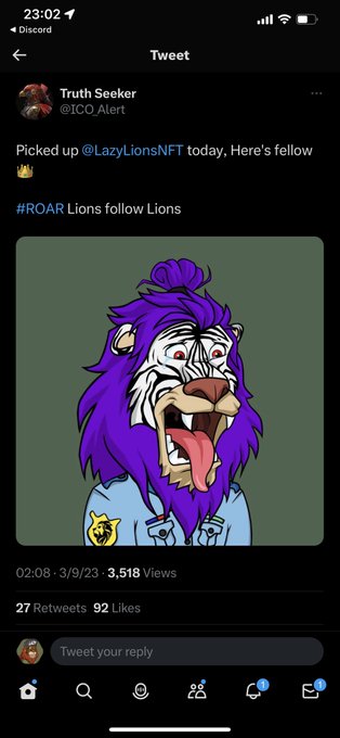 Never gets old for me. Welcome to the Pride everyone! @LazyLionsNFT #ROAR Now let’s earn some ROAR points 🦁🧃🍼👀