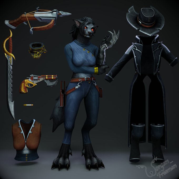 Praise the sun, I've been playing around with some custom shaders to spice things up. Final presentation of the full character and her gear will come soon. She just needs some finishing touches. 🐺
