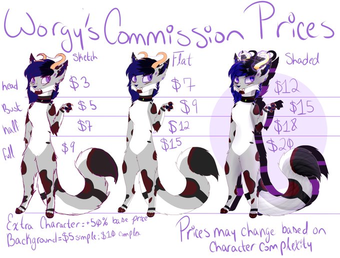 @GubSubmarine @CommissionHu6 Here's my prices along with my most recent pieces, all from the past two weeks ^^, each portraying a different type of shading and such