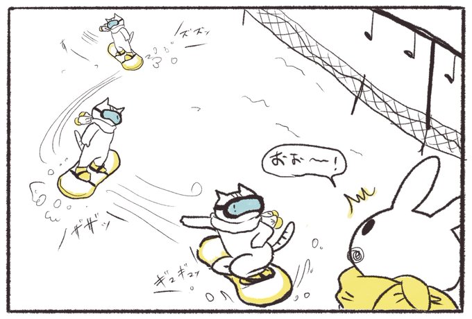 #漫画が読めるハッシュタグ #冬の創作クラスタフォロー祭り #オリキャラ #4コマ #四コマ漫画 #創作漫画 #私を布教して #動物 #創作の狼煙 #ウィンタースポーツ