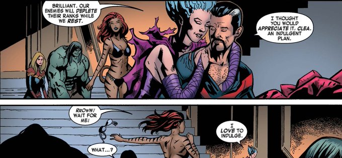in one alt universe she was a menae a trois with Dr. Strange and Clea (she called him Master)