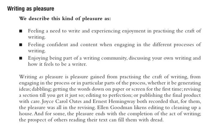 @sam_creighton @ANewChapterBks @mr_alfredb @OpenUni_RfP This is a great conversation. You’re right. Writing isn’t always pleasurable. However, like Sam says, we can create a culture in the classroom which can make it as pleasurable as possible. We call this writing ‘as’ pleasure. See below 👇