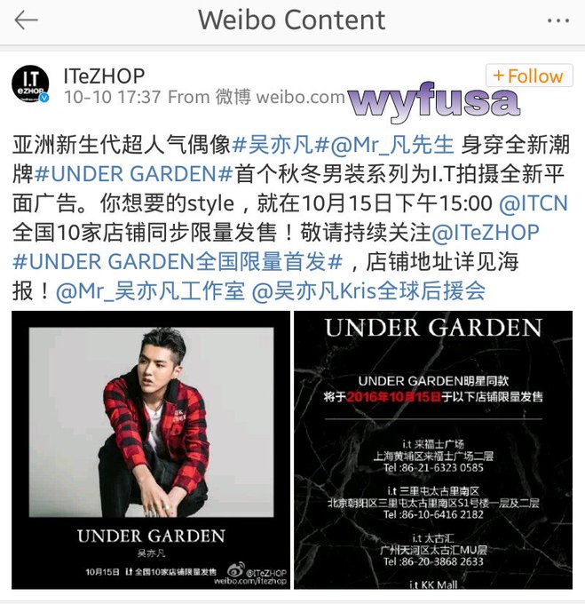 {Weibo} 161010 ITeZHOP weibo update with #KrisWu