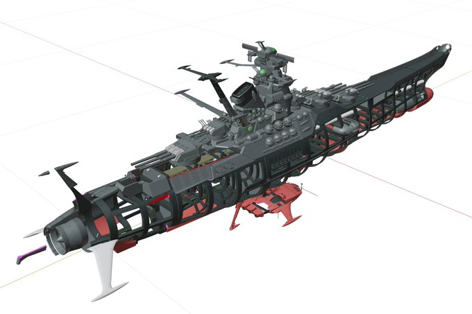 後部上甲板レベルの司令塔側にも、なんか搬入口があるんだよな。2199でちょろっと絵だけ描かれてた「つくば」とかお葬式やったところもここって解釈でいいかな(設定ではこの下の甲板)。救命装置格納庫乗ってる板の下に舷側デリックとかあれば雰囲気でるかしらね(だから宇宙だってばww)