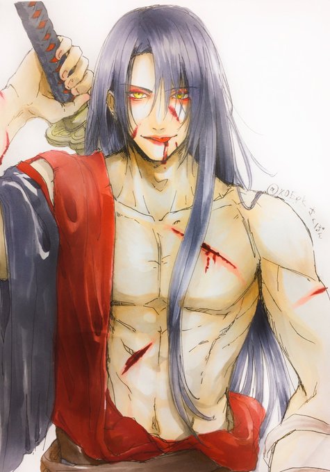 次郎太刀の真剣必殺のとき、髪ほどけて破れた布からしっかりした筋肉が見えて急に雄みが増すの最高すぎて最高(語彙力)