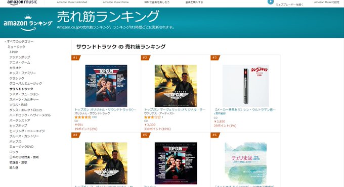 この傑作を広めんとするパラマウント・ピクチャーズの戦略も見事ですね。Amazonランキングもスゴい( ゚д゚) #TopGun #TopGunMaverick #トップガン #トップガンマーヴェリック https://t.co/rNnaJA2qKm