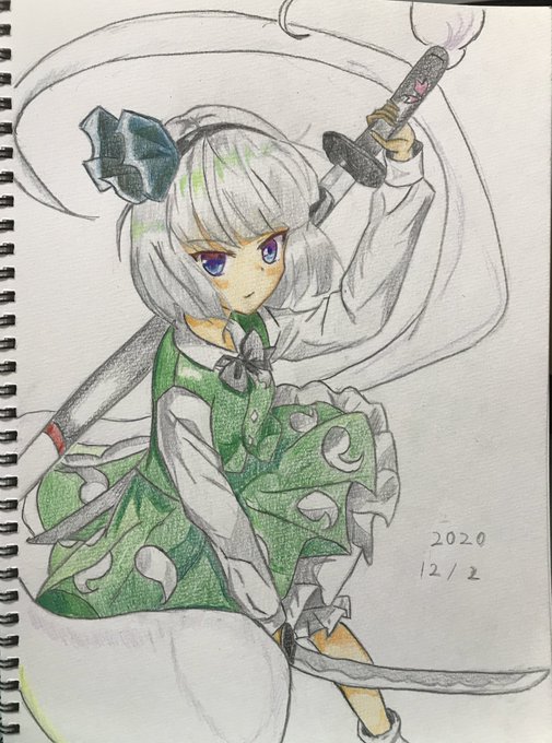 #絵描きさんと繋がりたい #東方Project #魂魄妖夢 色鉛筆と仲良くなれません😭