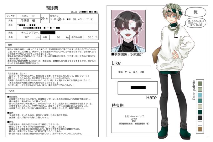 #爽朝病_問診票 【月見里 螢】 「月見里 螢!よろしく!山がないと月が見えるから月見の里って書いてやまなしなんだって!面白くない?」