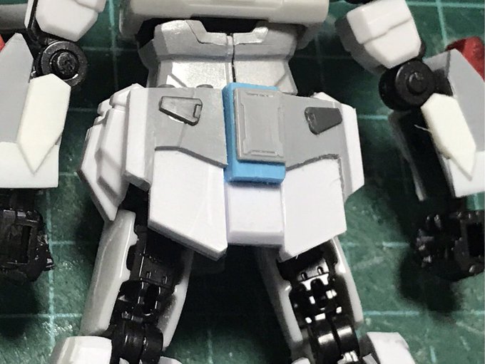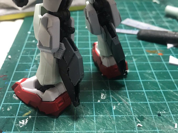 今日の改造進捗。 ふくらはぎのスラスターは適当に30MMのジャンクから。 ところで尻アーマーってこれもスクラッチの方が早そうだね… #Gフレーム