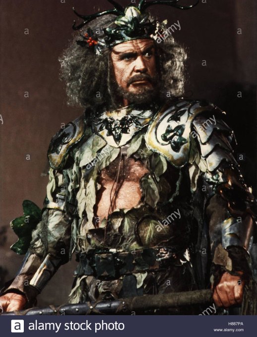Sean Connery a lo loco y entregadísimo a la causa como el caballero verde en el delirio de espada y brujería a la british SWORD OF THE VALIANT (1984), la versión de Excalibur de baratillo de la Cannon.