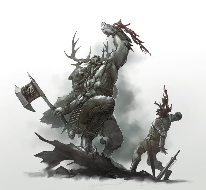 Esta ilustración la hice en colaboración con @Barbarrocs como trofeo para los ganadores del torneo de @wizards_magicES organizado por @DevirIberia con motivo del lanzamiento del set de "kaldheim".