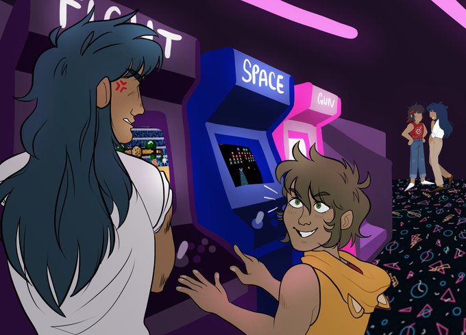 Good morning #Saintober2020! There are tons of great brothers in StS but Kanon babysitting Aiolia while Aiolos and Saga go on an Arcade Date? That's what I'm talkin' about. #saintober