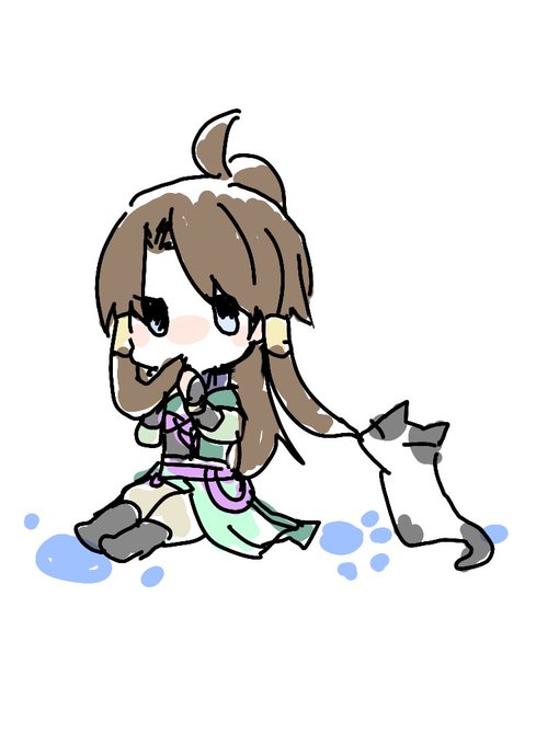 うちのきょーいくん昔はお団子で頭巾してたけど今は惜しげも無くポニテを揺らしている...。ポニテは世界を救うので...😊 髪の毛は砂埃付いてる