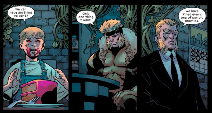 Ok, so we have the perversion of "time-ship level up". Where Synch went to the Vault, Victor has had god knows how long honing his depravity. He did them all in, became a thousand different killers. He's coming out v different.