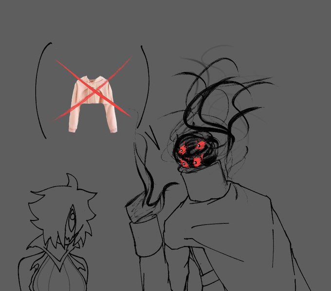 I finally get to send these through as an actual image and not a phone drawing, here’s the better quality post of the shitpost drawings I did before