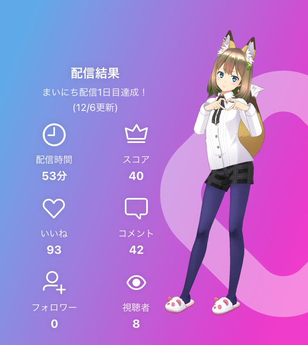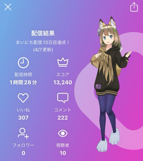 Androidで配信するとギフトの表示が遅かったり、最後のメッセージが送れない事が発生してて困っちゃう。久々の配信バッジ獲得(1年振り2回目)
