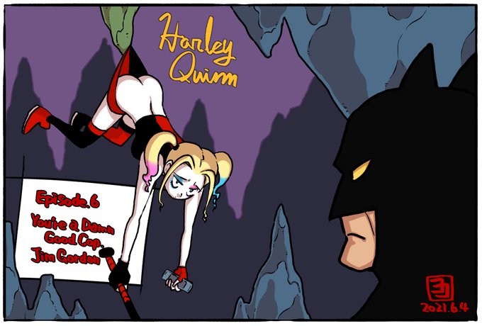 ハーレイクインアニメ6話目は衝撃シーンがいっぱい出てきたけど、一番衝撃だったのはバットシグナルの収納方法が判明したことかな。そこ畳めるんだって思いました。あとジム頑張れ。 #Harleyquinn #Batman