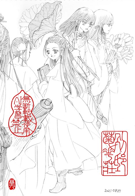 こう云う感じのラフを以前描いたよね~…と思って描き始めたのですが、今になってクロッキー帳開いてみたら全然違った(画像2枚目)🤣