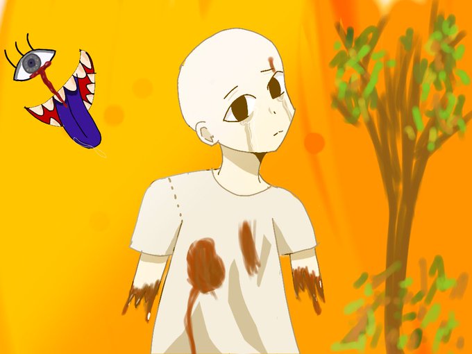 「痛かったよ」 こういう絵上げると、病んでると思われそう 。左上の血の涙が上手く描けた気がする。ちなみに1時間くらいで書き終えた。 #イラスト #絵描きさんと繋がりたい