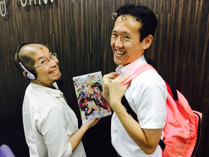 みんな!お待たせ!今月からHoneyWorksさんとのコラボで実現した『特性クリアファイル』名古屋校に到着したよ~!今後の体験入学に参加された皆さんにお配りいたします(●´ω`●)(注:表紙イラストに成りきっているおじさん2人ステキでしょ♪)#代アニ