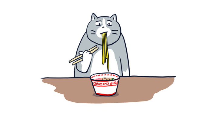 お昼です😽 #ねこ #イラスト #ゆるい絵 #ゆるいイラスト