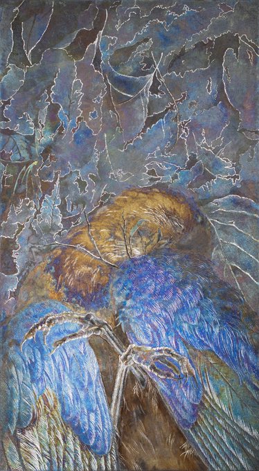 錆びるという行為を繰り返し、流転する生命の美しさや神秘を題材に描きました。