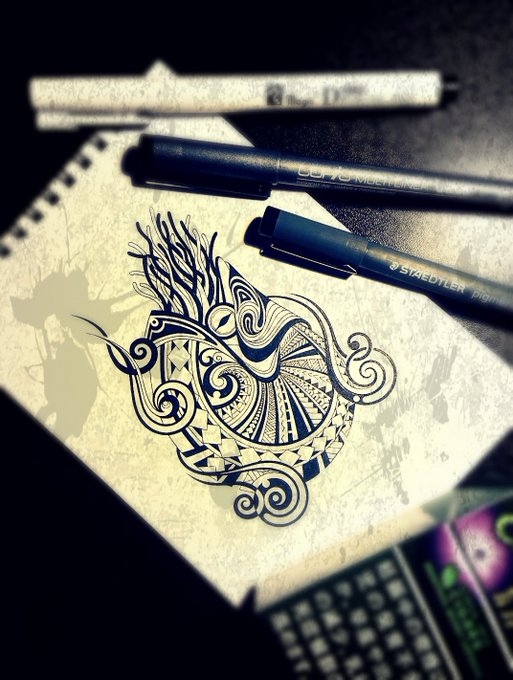 久し振りの新作トライバル 【オウムガイ】 ~下描きとベース絵も添えて~ #トライバル #タトゥー #デザイン #ペン画 #イラスト #アナログ絵 #オウムガイ