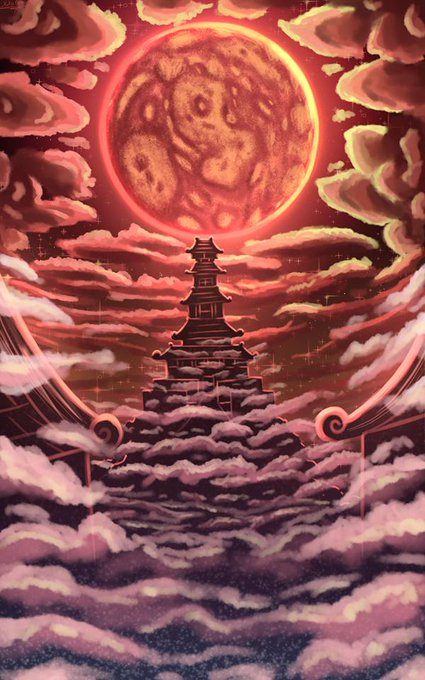#digitalart #Temple #moon #bloodmoon
