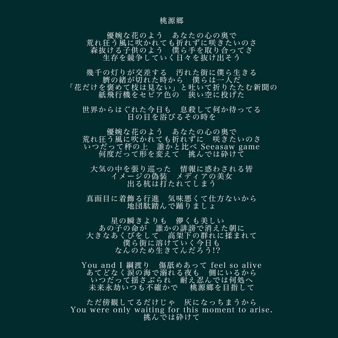 「桃源郷」の歌詞はこちら!