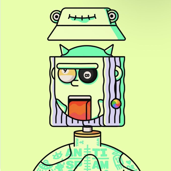 Welcometo my 8th TS to the gang! BUCKET FROG, 8 ball eyes, devil brain,and finally the one and only spam body trait! Finally found the forever spamm @ThePossessedNFT #3767