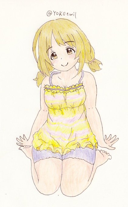 自宅でポーズの練習村かな子ちゃん 黄色先に塗ったがために薄紫全然色が乗らなかったー。。。