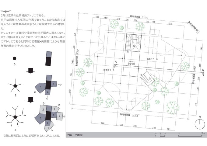 さよなら絶望先生の最終話後の世界で糸色望と絶望少女達が暮らす家を設計。少女達が持つ希望と絶望を抽出し、それぞれの個性が反映された部屋の集合体を建築とした。