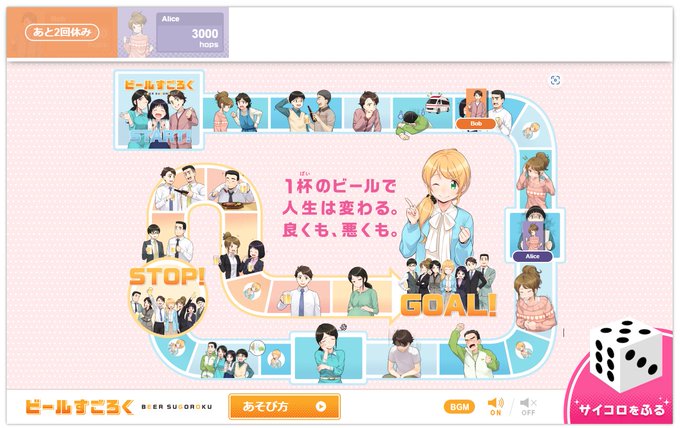 書籍以外だと、ビール酒造組合が未成年者の飲酒防止啓発用に作成した「ビールすごろく」というHTML5アプリに出演していたりします (ピクシブ百科事典を参照) 。