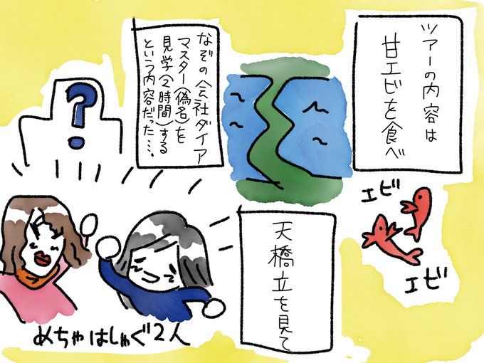 かなり前ですがおかんと甘海老食べ放題バスツアーとやらに行った時のお話... 会社の名前は念の為偽名にしてますが全部実話です... #雪絵日記 #毎日雪絵日記 #わりと頑張った