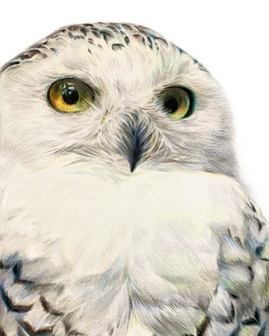 シロフクロウの色鉛筆画✍🏻