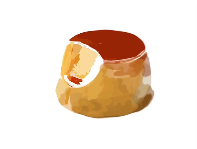 誰が一口たべちゃったのかな? みたいな絵🍮 . 全然かんけーないけど #お文具さん のプリンさん好きよ♡ LINEスタンプも持ってる笑 #デジタルイラスト #食べ物イラスト