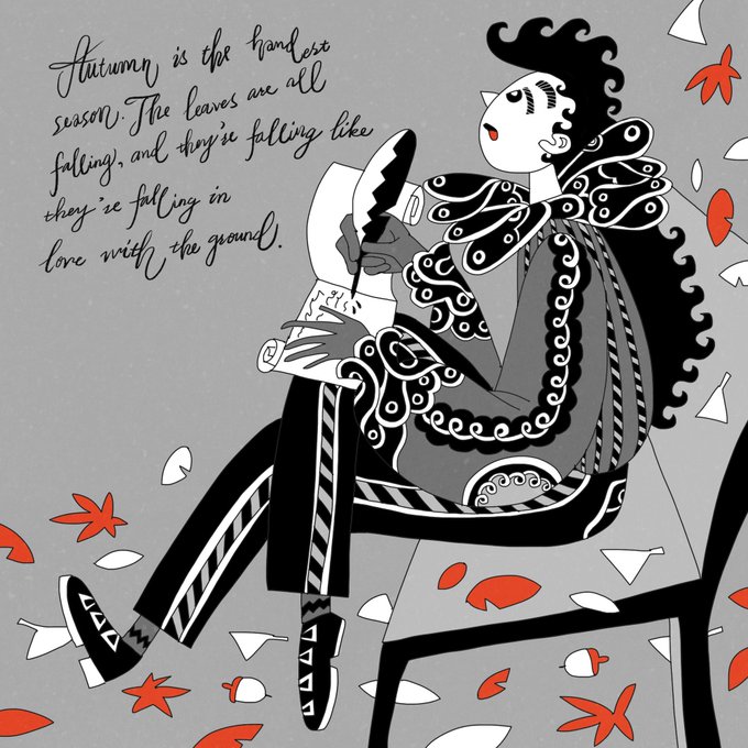 #illustration #Digital #イラストを4枚貼ると秋風に乗って絵柄を好いてくれる人の元へ届くらしい