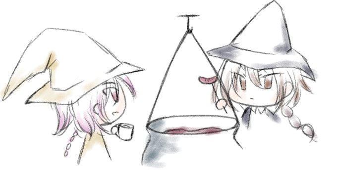 @05BlancRaven13 @aruihatubame 三角帽子に三つ編みペアですよ。 描いてて今気付きました。 ほら、ゆるふわ!