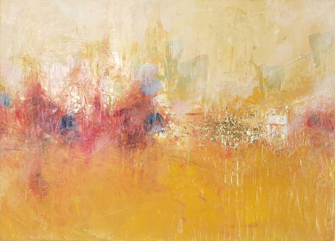「小さな成果」 2021年制作 F3号(27.3×22cm) 油彩・オイルパステル・箔 売却済