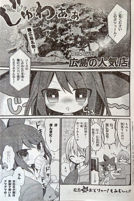 本日発売ヤングエース7月号にて「広島妹 おどりゃー!もみじちゃん!!」の第2話「何が広島焼きじゃ!」が掲載されています!✨