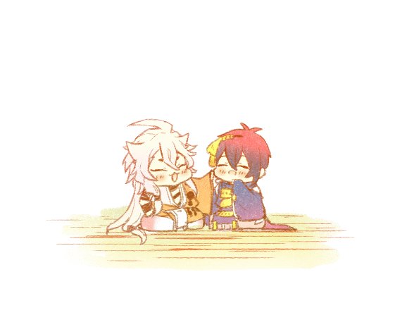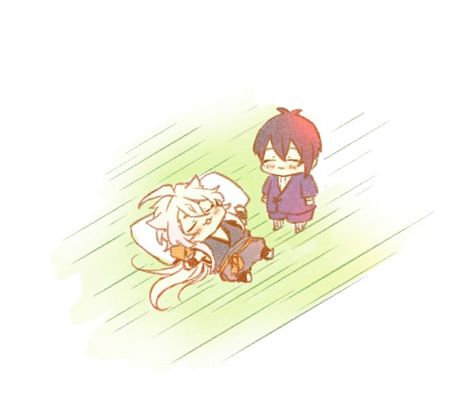 [小狐丸の上にダイブッ!する三日月宗近]です~!(ノjj*◜ヮ◝)ノドーーーン(◝ω◜*;)