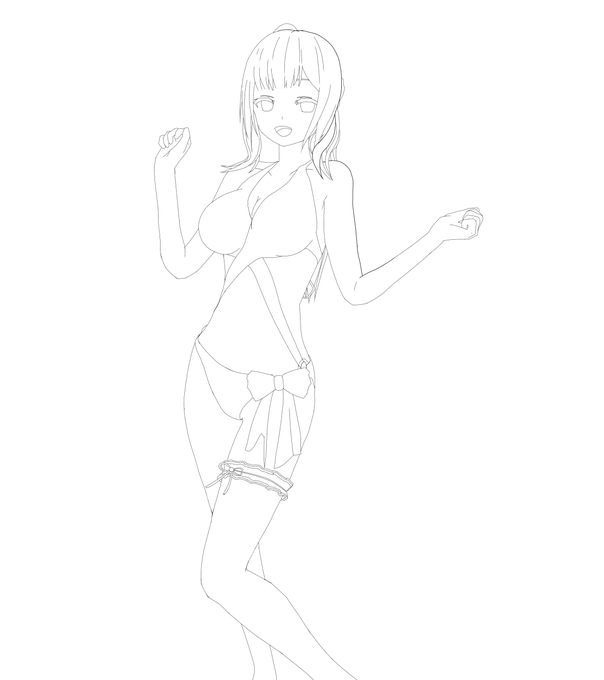水着と線画