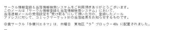 ◎貴サークル「多摩川エネマ」は、木曜日 東地区“ラ”ブロック-48b に配置されました。
