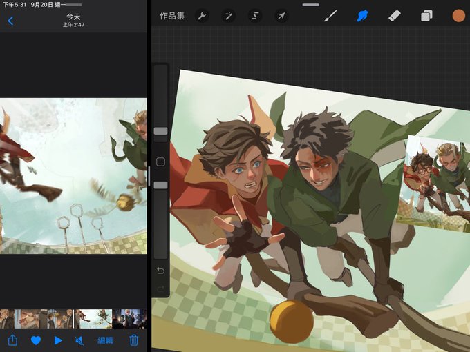 這張我模仿了魔法覺醒裡跩哥的卡牌動畫構圖,也做了吸色,可以勉強說是仿官吧😂