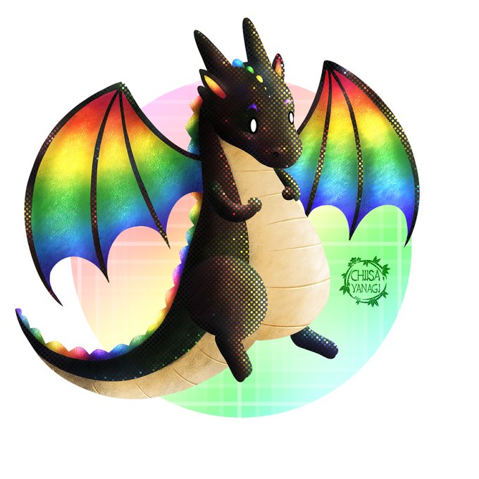 12: Observando a uno de mis peluches e intentando simular su textura, me ha salido este dragoncito arcoiris.🤗Lo veo aún algo extraño por tener lunares y no escamas pero es muy bonito.😊